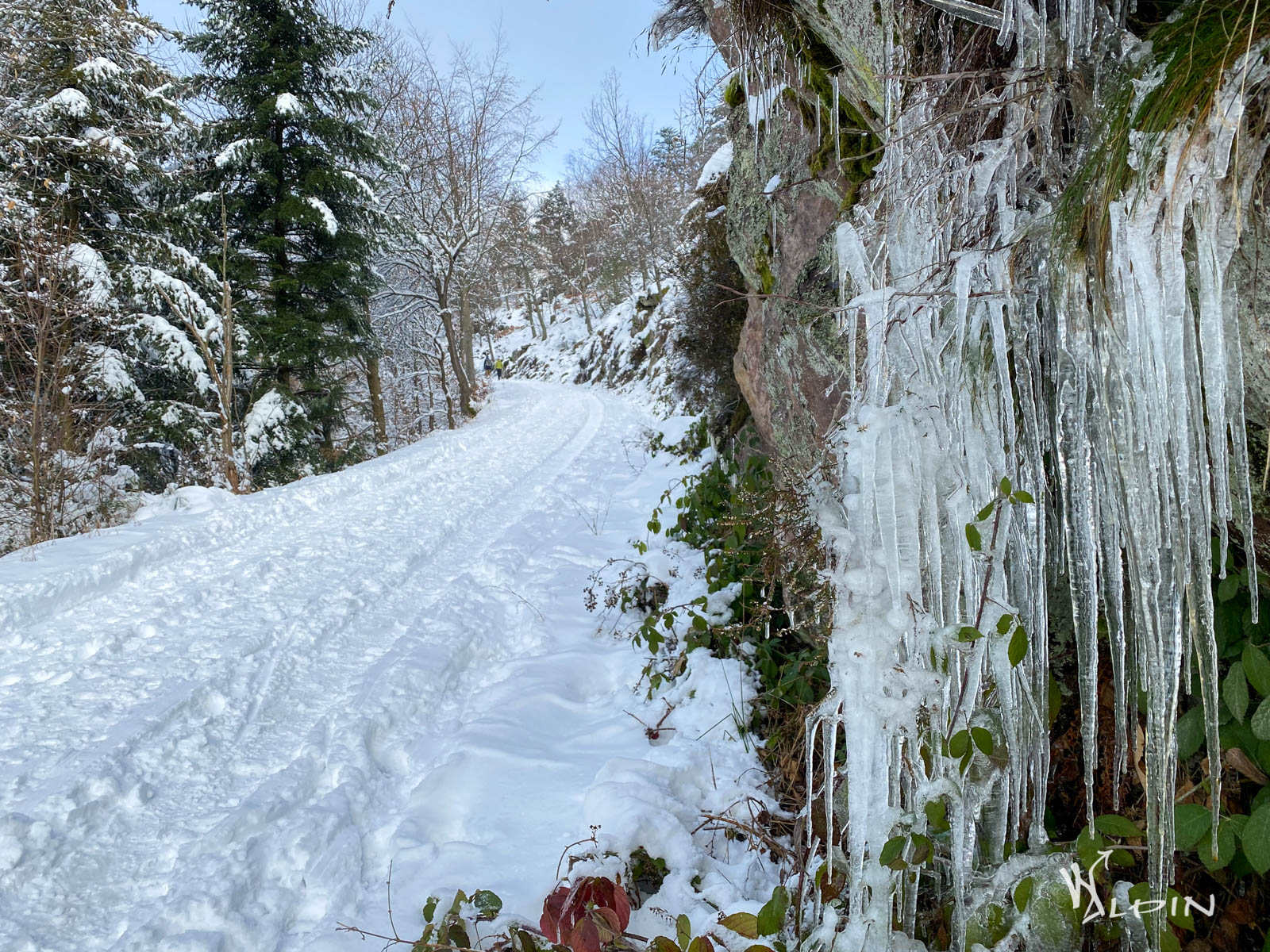 Mittlerweile waren wir auf ca. 600m angelangt. Hier war alles wunderschön weiß, und an den Felsen hingen stellenweise Eiszapfen.
