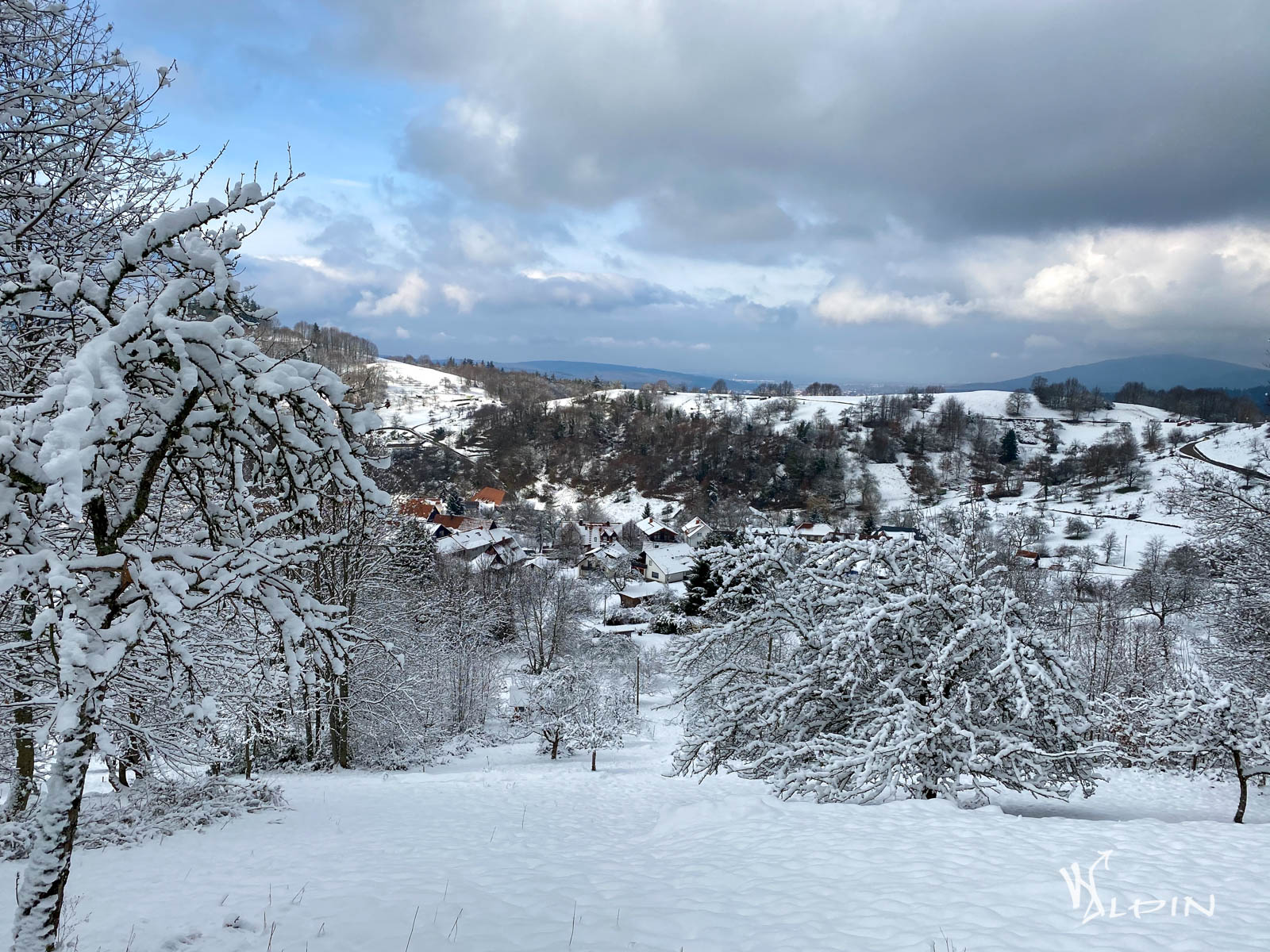 Wir kommen zum Lautenbachtal und wandern entlang des Lautenbach talwärts. Hier wird der Weg sehr schmal und an der ein oder anderen Stelle auf dem Schnee etwas glatt. Der Weg führt uns direkt in den beschaulichen Ort Lautenbach. Hier kommen uns auch wesentlich mehr Wanderer entgegen, die von hier aus hoch zur Teufelsmühle wandern. Wir durchqueren Lautenbach und gehen das Lautenbachtal weiter bis oberhalb von Scheuern.