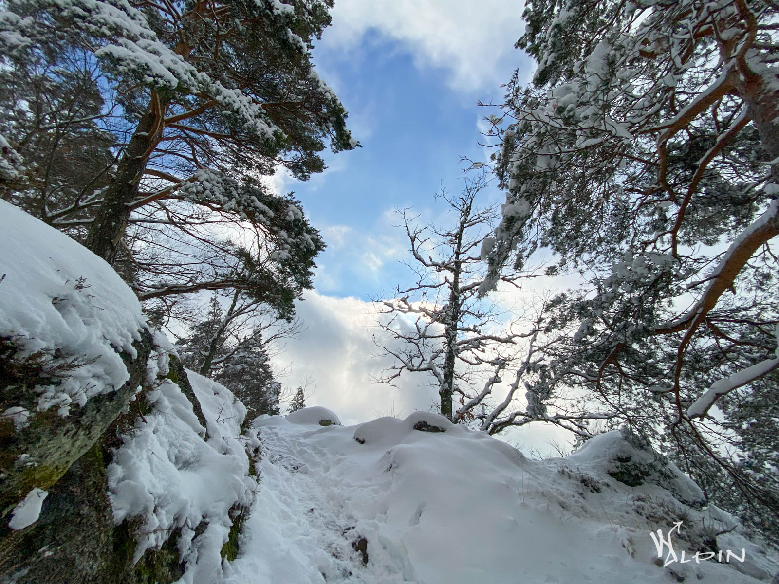Wir erreichten jetzt den Lautenfelsen auf den in den Fels gehauene Stufen führten. Bei Schnee kann es da stellenweise etwas glatt sein. Und hier war jetzt doch etwas mehr Betrieb, bisher waren wir ja ganz alleine unterwegs.
